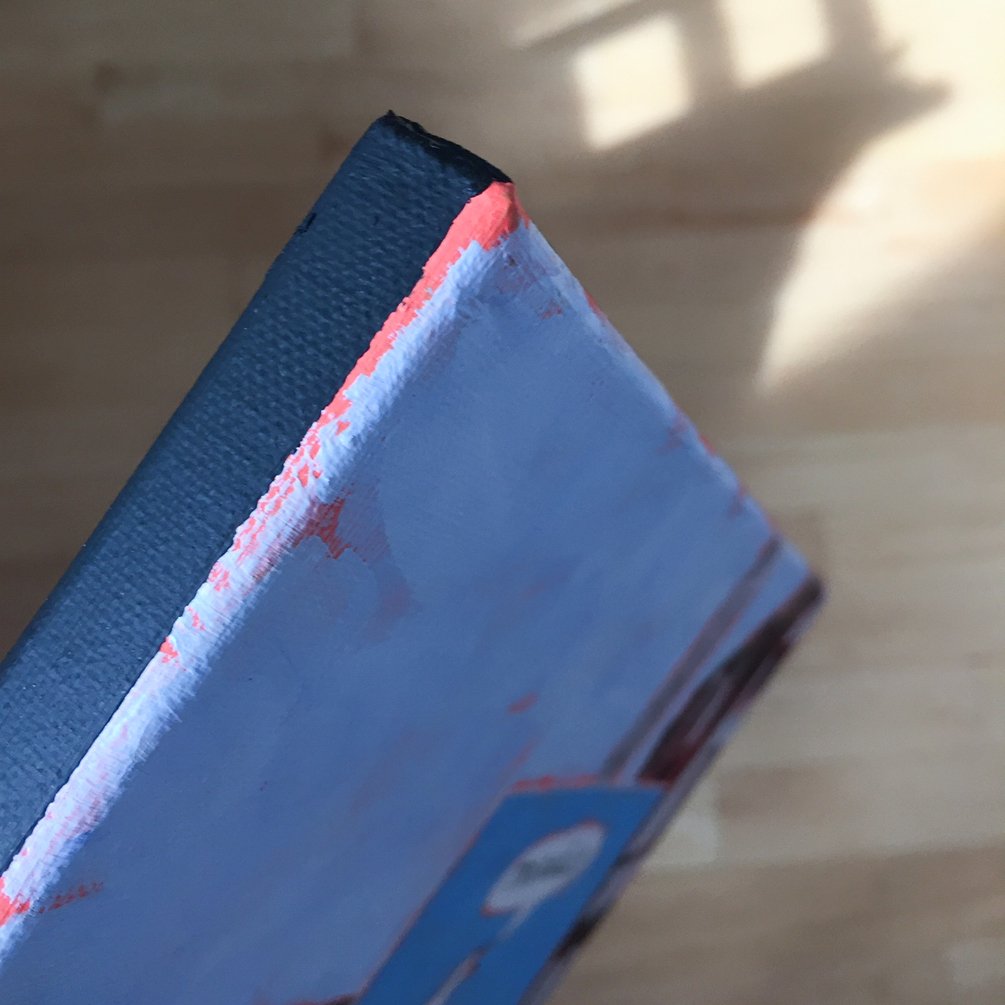 Acrylic on wrapped canvas. Edges are painted black so it does not require framing.